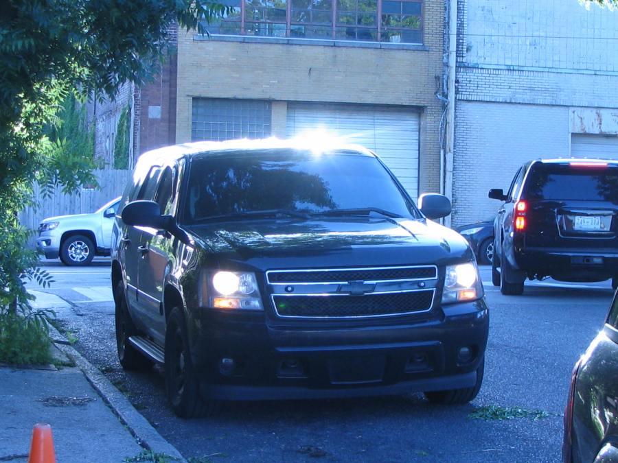 One of two TACT Suburbans parked near the National Civil Rights Museum at the Martin Luther King memorial Parade